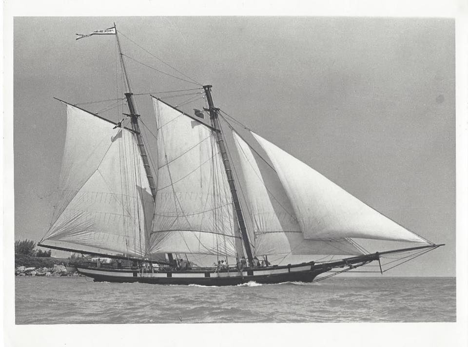 n recent correspondence with John Peterlin, we learned a few interesting additional factoids. The Pride crew would later learn that a major cold-front squall that hit Pride on her maiden voyage had previously barreled through Baltimore and knocked down a container crane at Dundalk Marine Terminal. John also shared that while in Mystic Seaport, Pride was visited by sail-training pioneers Irving Johnson and Allen Villiers. John recalls the crew’s excitement at meeting Johnson, and members of the crew recounting tales his exploits and extraordinary strength and ability to perform seemingly superhuman feats in the rigging.